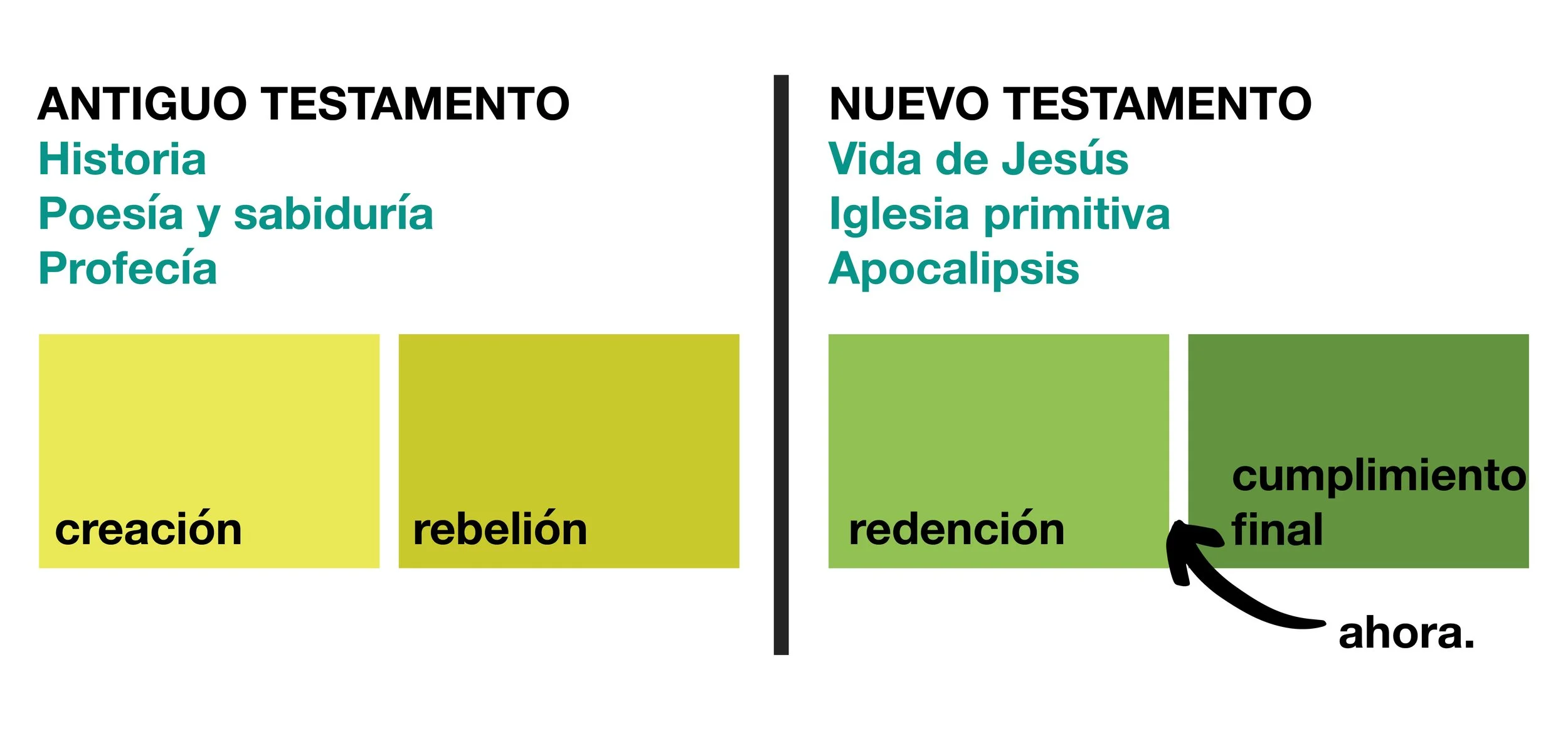 El Nuevo Testamento cuenta la historia de la vida de Jesús sobre la tierra: Su nacimiento, Sus milagros, Su muerte y Su resurrección. El Antiguo Testamento está lleno de profecías que hablan de la promesa del Mesías que vendría, y de historias que muestran la profunda necesidad de un Salvador que tenía la humanidad.